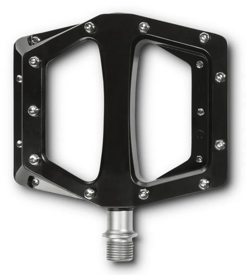 These lightweight aluminum flat pedals are installed with a Cro-Mo axle. The non-slip pins are changeable and offer the best grip on the bike.
