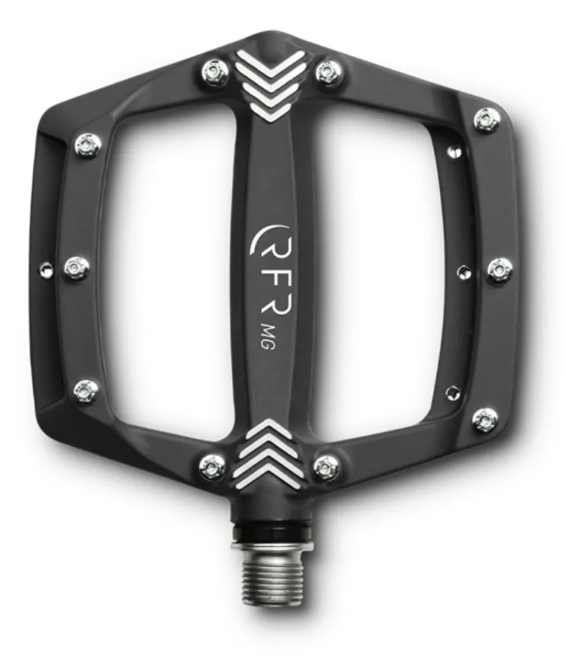 Ultralight magnesium flat pedal with low-profile design, replaceable anti-slip pins, cartridge bearings and LSL bushing.