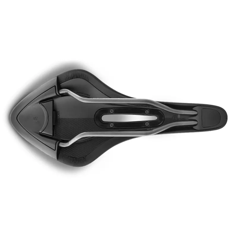 Arione R3 Open features a composite Carbon-reinforced nylon shell and a light, strong, corrosion-resistant K:ium rail. A Comfort Core foam layer beneath the neat, durable Microtex cover provides comfort, which is enhanced by the full anatomic cut-out that avoids pressure on the rider’s sensitive soft tissue and ensures that all weight is correctly supported across the whole surface of the saddle.