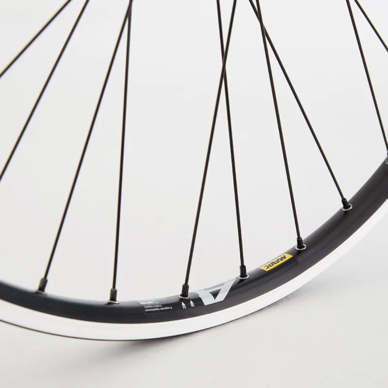 - Mavic A319 box-section rim features machined braking surfaces and black anodising