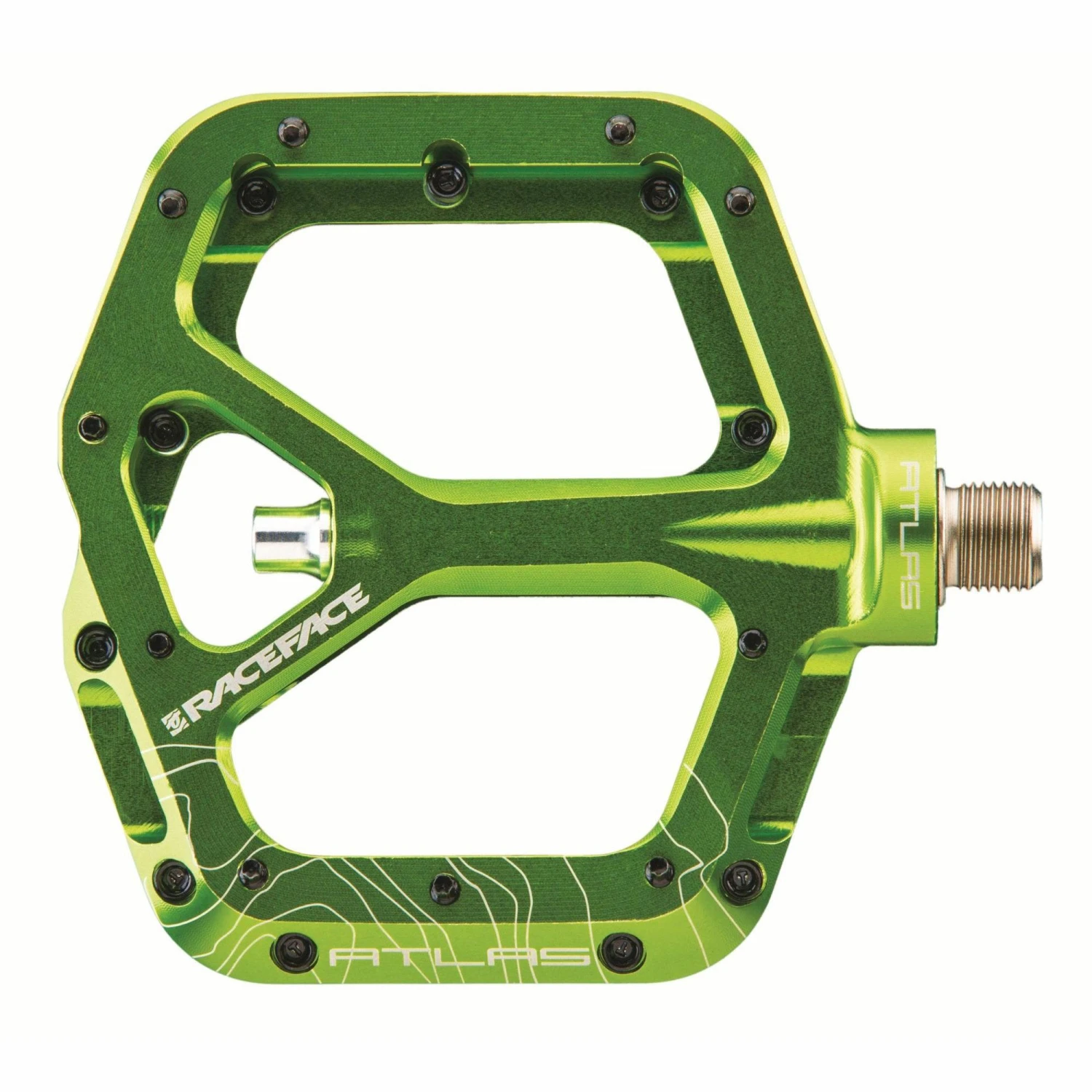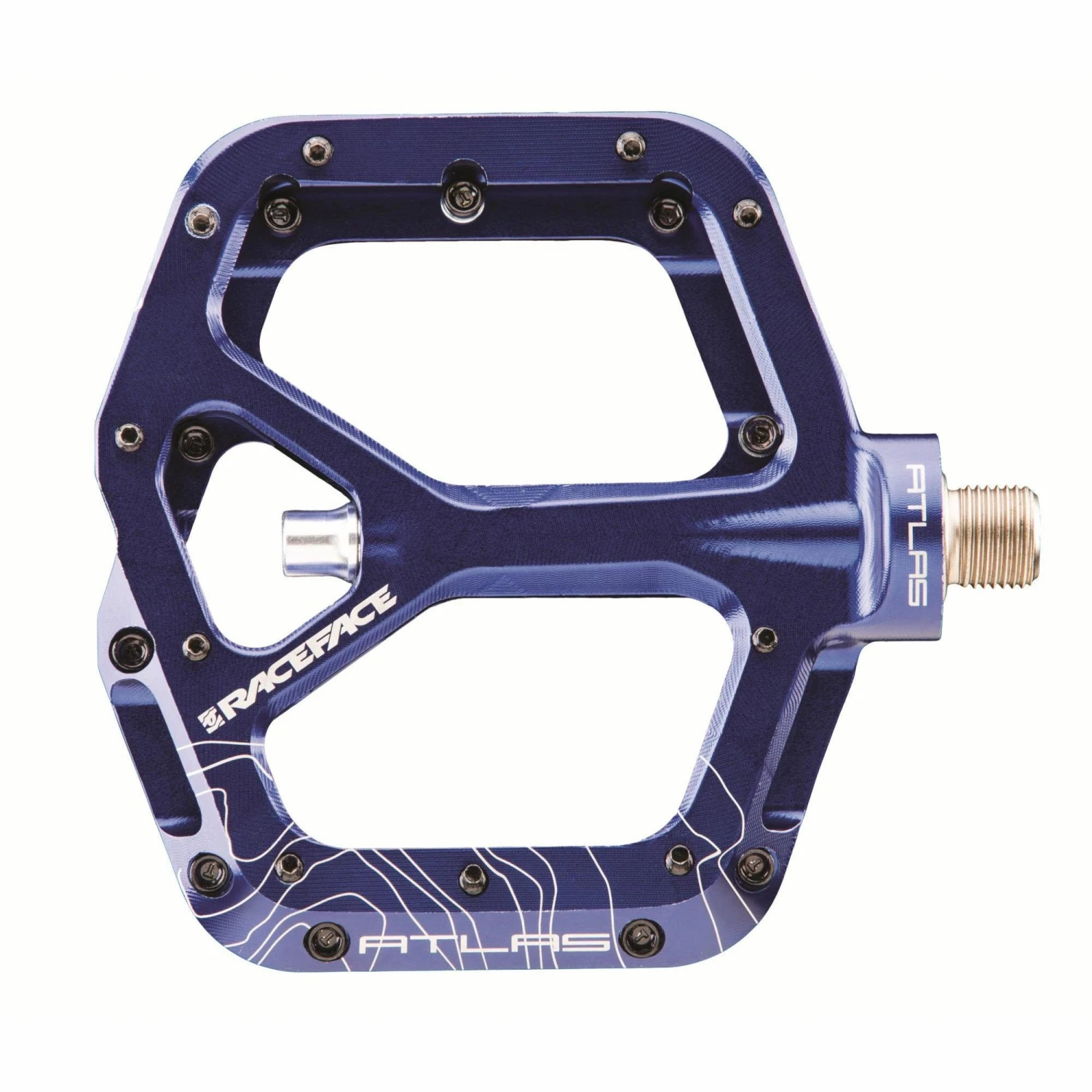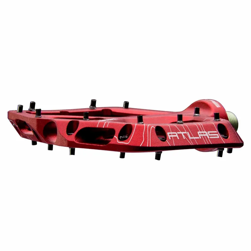 Introducing the Atlas pedal. A low-profile, lightweight, wide aluminium body with the double-concave platform. The svelte design makes it perfect for trail bikes while Chromoly axle and bottom loading hex traction pins ensure it can take abuse and perform double duty on your DH rig. All of the Race Face styling and performance expected from the Atlas line.