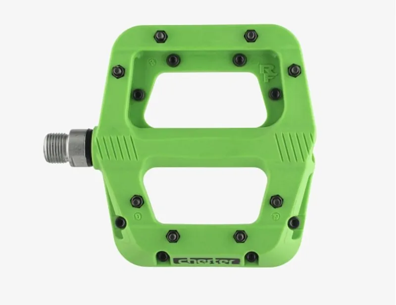 A new edition to the Race Face pedal line-up: the Chester Pedal. The tough and burly nylon composite body provides a large platform with the same grip as traditional alloy pedals via the bottom loading 8 hex traction pins per side. Thin and lightweight is the name of the game with the Chester, featuring a cro-mo axle that is fully sealed and a 100% serviceable bearing and bushing system. This pedal offers great performance for a wide range of riders at a price that leaves plenty of cash in your pocket for that round of bevies at your local watering hole after hammering out a day of hot laps with the crew.