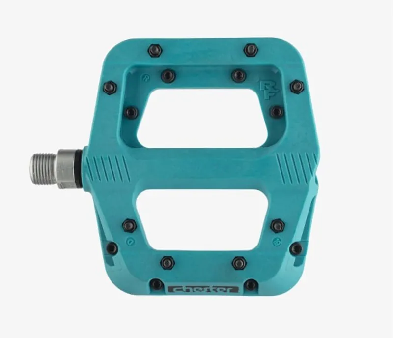 A new edition to the Race Face pedal line-up: the Chester Pedal. The tough and burly nylon composite body provides a large platform with the same grip as traditional alloy pedals via the bottom loading 8 hex traction pins per side. Thin and lightweight is the name of the game with the Chester, featuring a cro-mo axle that is fully sealed and a 100% serviceable bearing and bushing system. This pedal offers great performance for a wide range of riders at a price that leaves plenty of cash in your pocket for that round of bevies at your local watering hole after hammering out a day of hot laps with the crew.