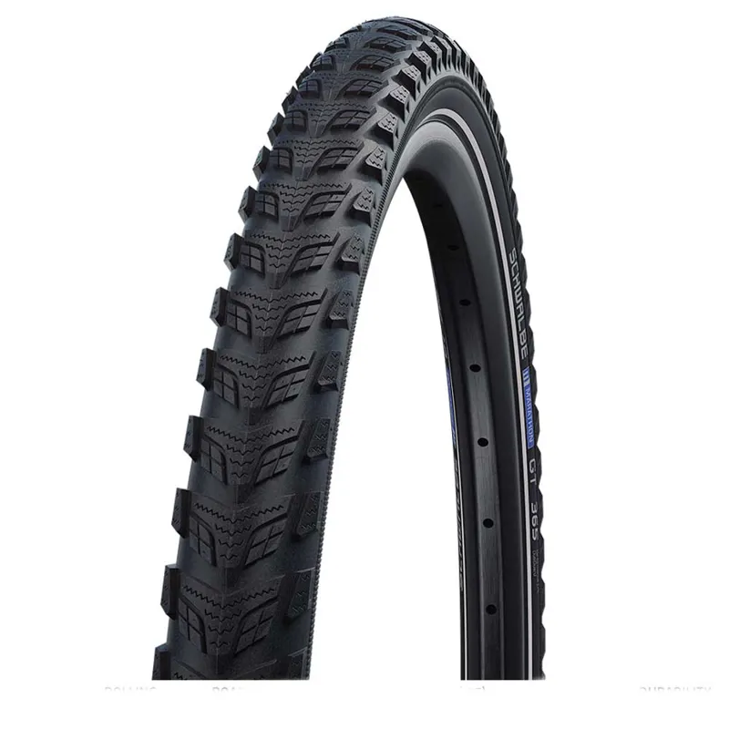 The Marathon GT 365 is the first tyre which you will ride safely throughout the year in almost every condition. The new lamella tread and the specially developed FourSeason compound provide full grip, no matter what time of the year you ride your bike. Fitted with DualGuard puncture protection technology for maximum safety.